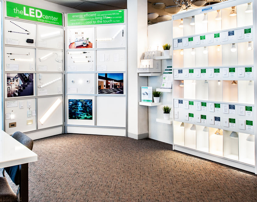 A.D.Cola Lighting created this LED center to educate you on the variety of ways you can use LED lighting in your home. LED lighting uses approximately 80% less wattage than incandescent bulbs, has a long life, lasting on average up to 50,000 hours and is cool to the touch because it uses low heat. We especially choose and quality test all of our LED products and bulbs to give you the best in LED. Our interactive LED center allows you to see a variety of LED lighting that can be used in your home or business, including recessed, under cabinet, tape, step and hallway, linear, and more. With our specially designed interactive bulb display you can compare LED bulbs vs. incandescent. Because LED is continually changing, we make it a priority to educate ourselves on new innovations to bring you the best in LED products.