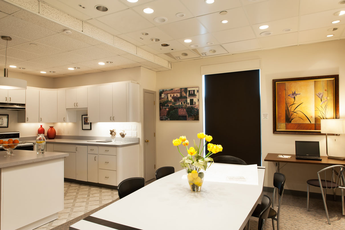 In our Kitchen Design Center we display a variety of recessed light sources, including LED, incandescent, and halogen. You will see how each grouping creates a different lighting effect and how placement matters. Compare different under cabinet lighting that brighten up your counter work space. We encourage you to bring in a sample of your counter top to see the effects under cabinet lighting has on your surface. Accent lighting in glass cabinets and shelves make your kitchen even more dramatic. See how you can control all these lights with the proper dimming systems. Our lighting consultants will show you how your dream kitchen will come alive with the right lighting.